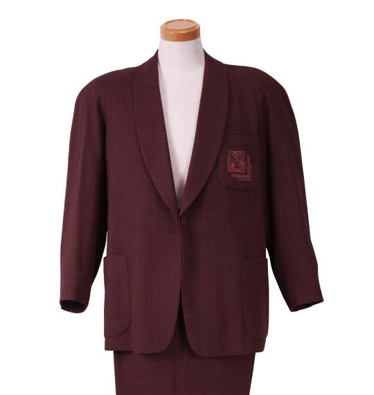 チェック柄が特徴的の明るくて軽やかな雰囲気になるデザインスーツ。胸ポケットの刺繍がアクセント。