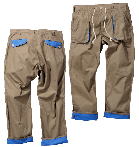 軽い生地感のライトキャンバス地にマチ付のデカポケットが印象的な「Free gate」のロールアップパンツです。