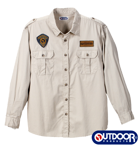 OUTDOOR PRODUCTS ワッペン付ミリタリーシャツ