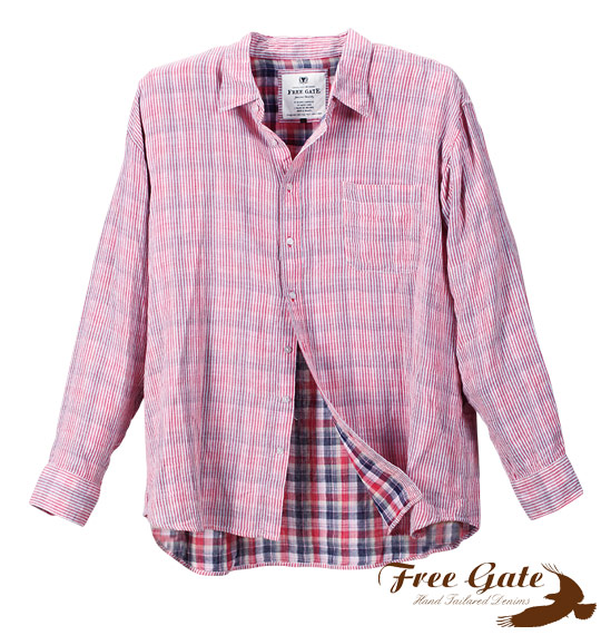 ガーゼの持つ柔らかな風合いが醸し出されたWガーゼシャツ。ボタンを閉めて、ストライプを全面に押し出すのも◎前を開けて裏側のチェック柄をチラッと覗かせるのも◎