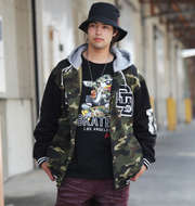 大きいサイズのカモフラ柄スタジャン入荷!手軽に使えるスウェットタイプのスタジャンはオシャレ男子の必須アウター!