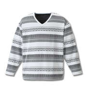 凹凸感で味のある立体的なリップル生地のオルテガ柄が他とは違う!VネックのロンTee