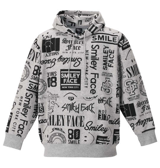 SMILEY FACE 裏起毛総柄プルパーカー