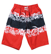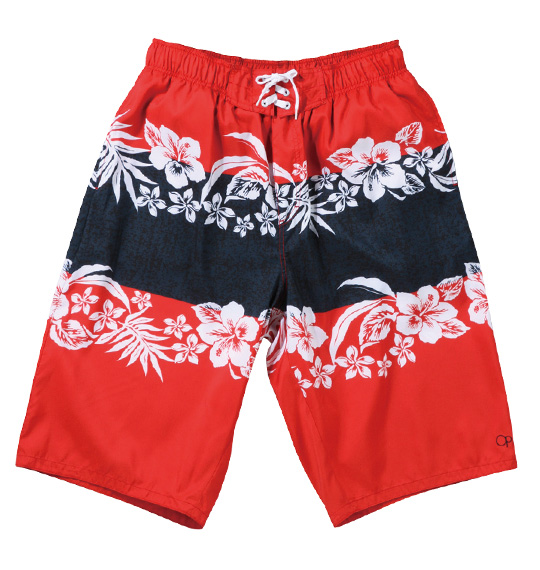 パッと目を惹く2色の切替にホワイトのハイビスカスがきれいに映えるサーフパンツ。花柄の持つソフトな印象が女の子にも好評!