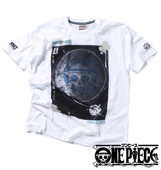 RIMASTER×ONEPIECEのコラボTシャツ。海賊団のマークがそのままレコード盤になったデザインがかっこいい1枚。
