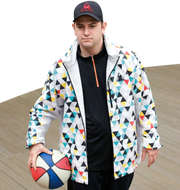 幾何学模様のデザインは、単色になりがちなスポーツスタイルにスパイスを効かせ、視覚的にも楽しませてくれます。見ているだけでモチベーションが上がりパフォーマンスもしっかりサポートしてくれること間違いなし!トレーニングやジョギング用としてはもちろんですが、普段着としてもおすすめです。暗くなりがちな冬スタイルのアウターとして羽織るだけで、爽やかなスポカジスタイルに変身!ボトムはジャージパンツやカジュアルパンツと相性が良いですよ。
