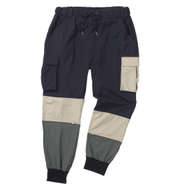 前閉じ/フロント膝下にジップ/ウエストゴム(調節ひも有)/サイド・バック・カーゴポケット有/リブ(裾)