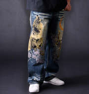絡繰魂 狼迫撃刺繍デニムパンツ