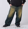 ダメージ感のあるウォッシュ加工が目を引く、存在感抜群のデニムパンツ。