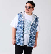 COLLINS メッシュリーフ柄プリントノースリーブフルジップパーカー+半袖Tシャツ