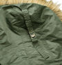 フード(調節ひも有(バックスライド))/ファー取り外し可能/フード裏ボア/サイドポケット・左側内ポケット有/ウエスト調節ひも有/フルジップ/スタンドカラー/中綿あり/リブ(袖口)/左袖シガレットポケット・ペン差し/比翼仕立て/#ラグラン