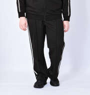 程良くゆとりのあるシルエットにさらりとした伸縮性のあるジャージ生地を用いることでストレスのない着用感を実現したトラックパンツ。