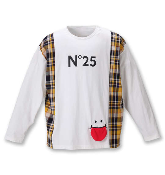 綿100%で柔らかな手触りの天竺素材、サイドのチェック柄部分は布帛生地なので伸び感はありません。