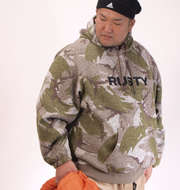 そんなラスティのカモフラニットフリースプルパーカーは、独特で唯一無二のカモフラ柄が印象的な一枚。
