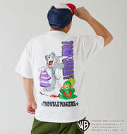 仲良くケンカする姿が魅力なトムとジェリーがバックにプリントされたTシャツ。