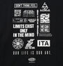 フロントはシンプルなロゴデザインで洗練された印象に仕上げつつ、右袖とバックには多彩なロゴプリントを配置。