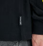 袖やバックネックに配されたカラーロゴが、ブラックボディに映えるデザイン。