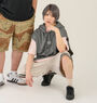 肩口をさりげなくカバーするフレンチスリーブと、ゆとりのあるオーバーサイズフィットが特徴。ドロップショルダーが程よい抜け感を演出します。