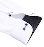 斜めにストライプが走る織柄が入ったホワイトカラー。袖口裏はドット柄の別布切り替えになっているので、折り返してもオシャレに決まります。