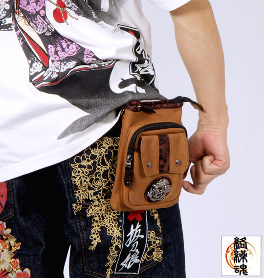 *外ポケット×2・内ファスナーポケット×1/エンブレム/刺繍/フェイクレザー