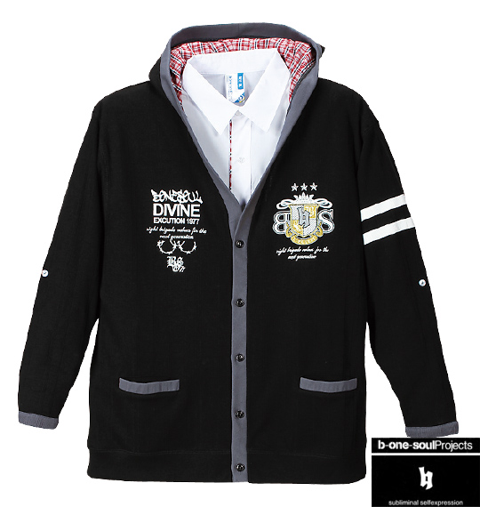 b-one-soul シャツフェイクフード付カーデガン