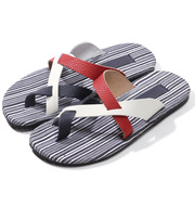清涼感のあるストライプが「粋」なサンダル。一番負荷のかかるベルト付け根部分はステッチで補強し、さすがMADE IN JAPAN!!の細かな気配りが感じられるアイテムです。