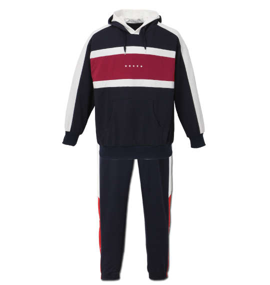 ダブルフード仕様でレイヤード風デザインにしたCOLLINS(コリンズ)のプルパーカー上下セット。