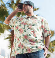 SHELTY 鹿の子ボタニカル総柄プリント半袖ポロシャツ